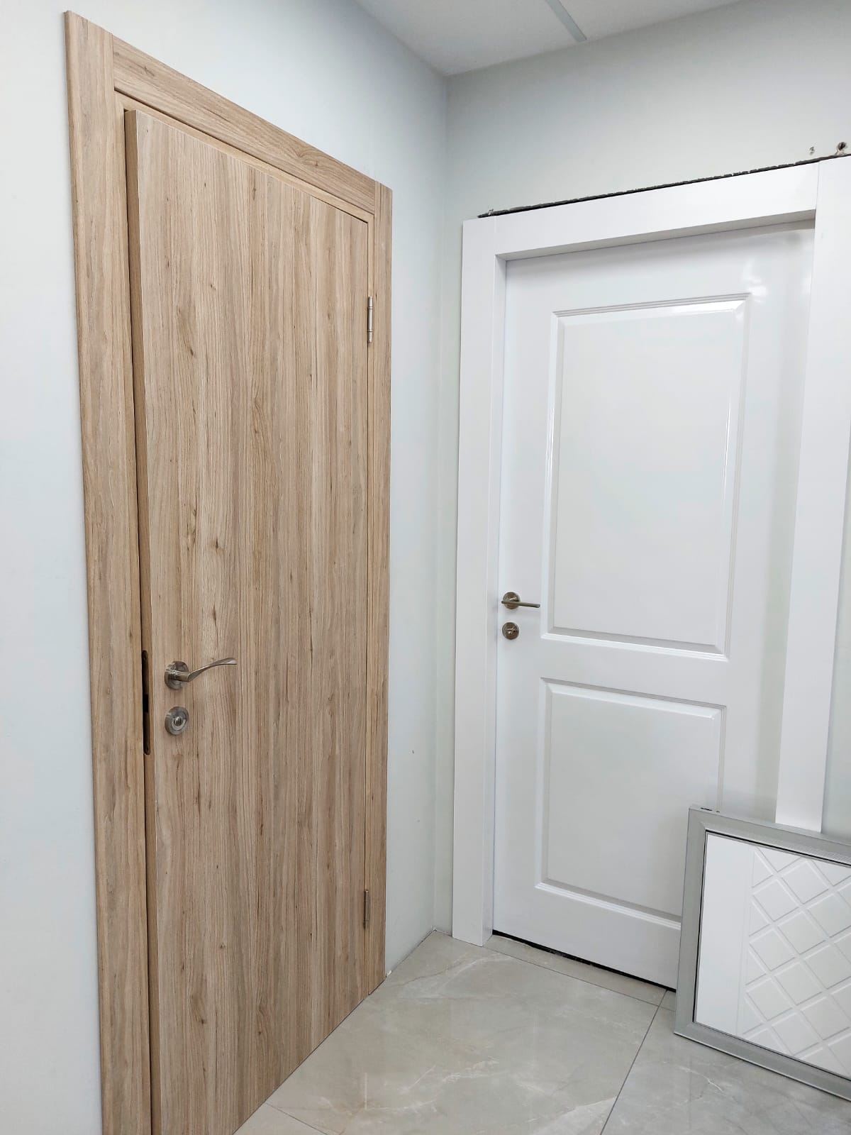 בנוסף, כל דלת מגיעה עם משקוף פולימרי, צבע לבן קלאסי שמאיר את החלל, ו-פרזול איכותי לפי בחירה אישית.